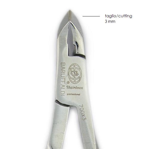 BARUFFALDI TRONCHESE INOX PELLE CM.10 MM.3 T3 TRONCHESINA PROFESSIONALETronchese molla singola, ideale per il taglio delle cuticole e delle pellicine in eccesso.